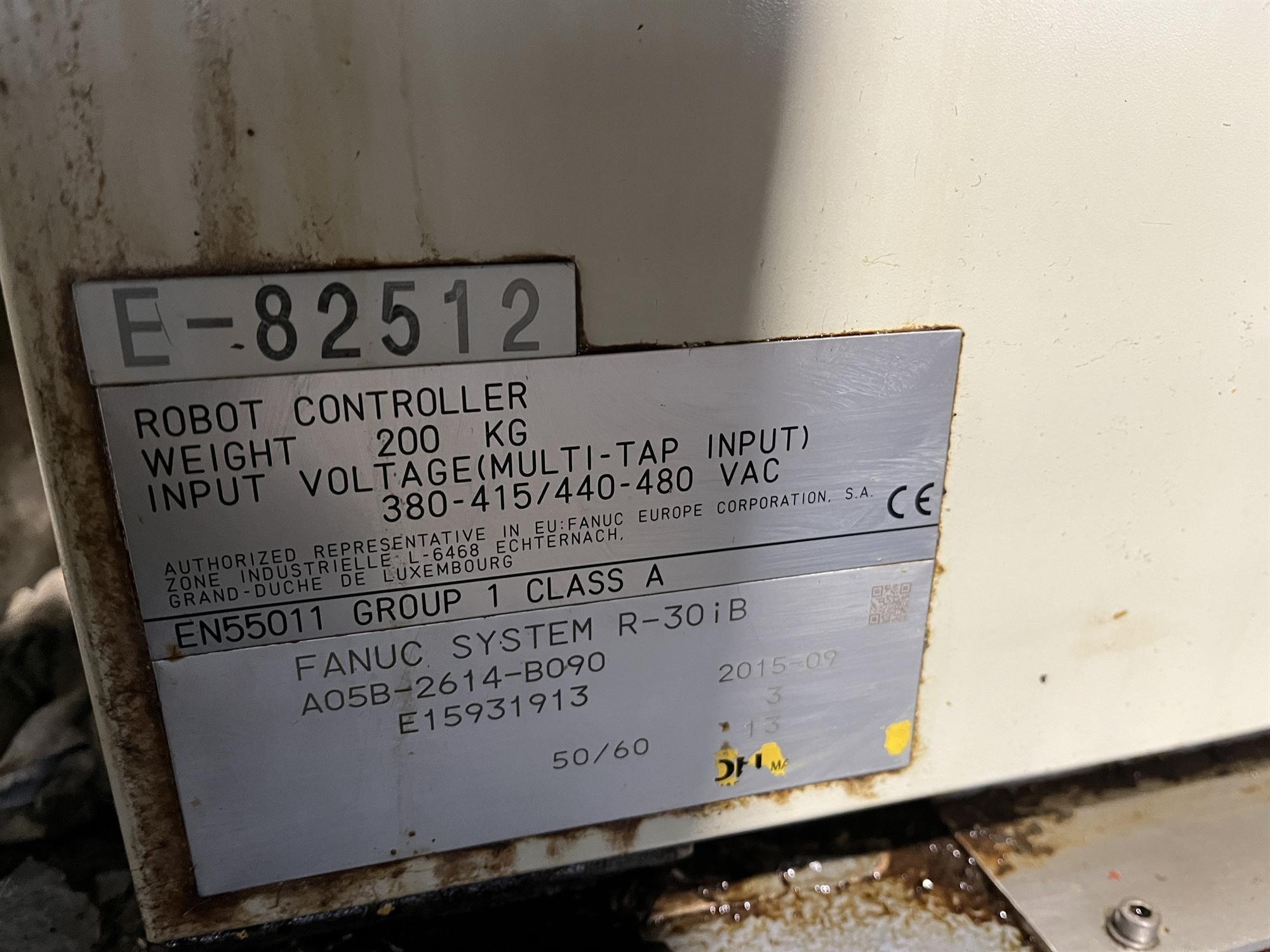 Fanuc-Manipulatorroboter, der eine Last von 700 kg handhaben kann Hat eine Reichweite von 2832 mm und ist auf einer Schiene (Van Sichen) von ca. 17 Metern montiert. Die X-Bewegung des Roboters beträgt 13 Meter. mit R-30iB Plus Controller A05B - 2614 - B090