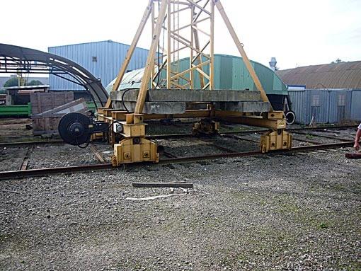Mobile tower crane on rails (102meters) Type underwagon 4600mm x 4600mm ballast; 18.5Ton Tower composition ; 2 elements of 2500mm Height under hook; 16300mm Branch lenght ; 40000mm contra weight; 7.25T