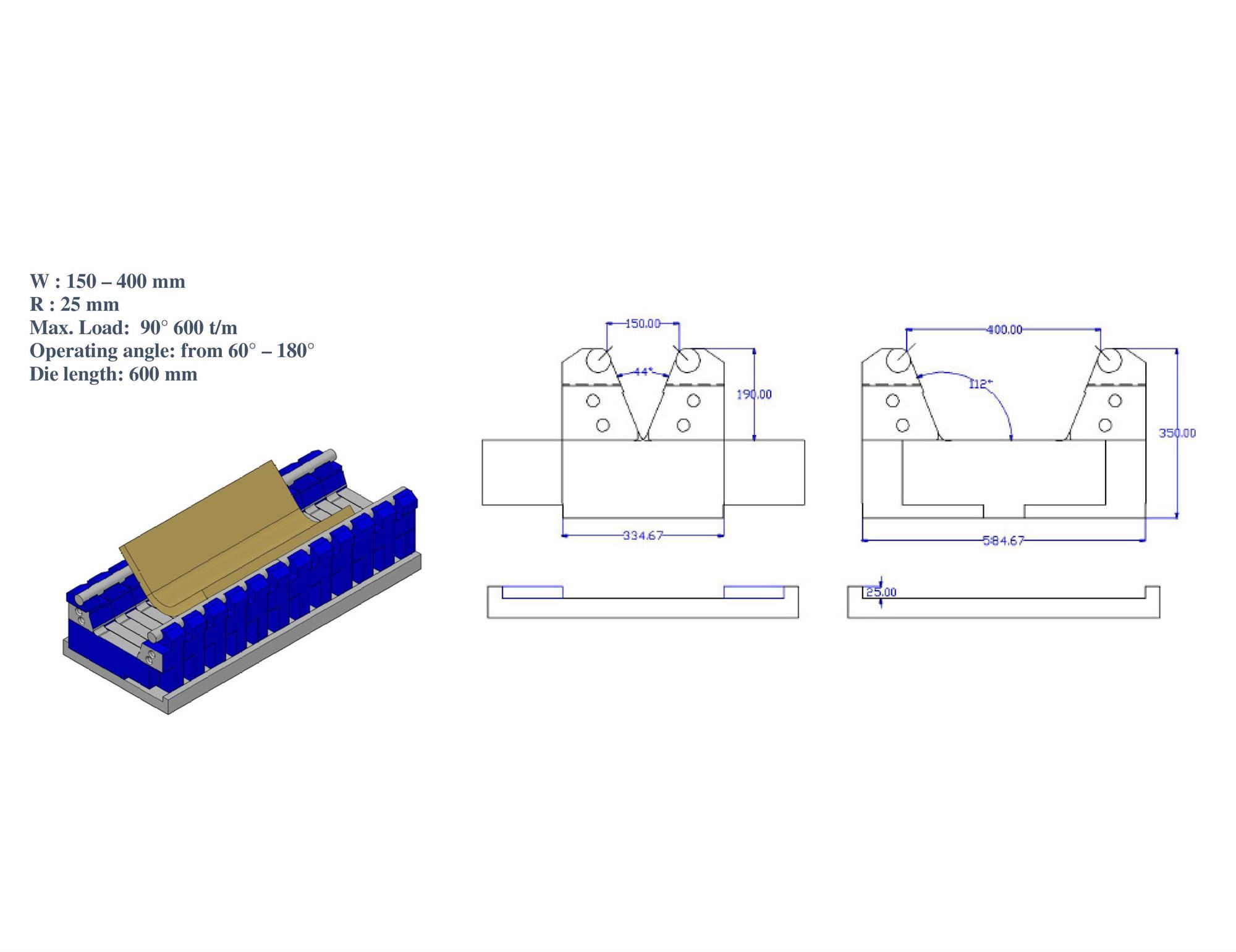 Matriz de doblado variable para acero de alta resistencia Tallas disponibles: - V65 > V185 mm - V40 > V280 mm - V120 > V300 mm - V150 > V400 mm