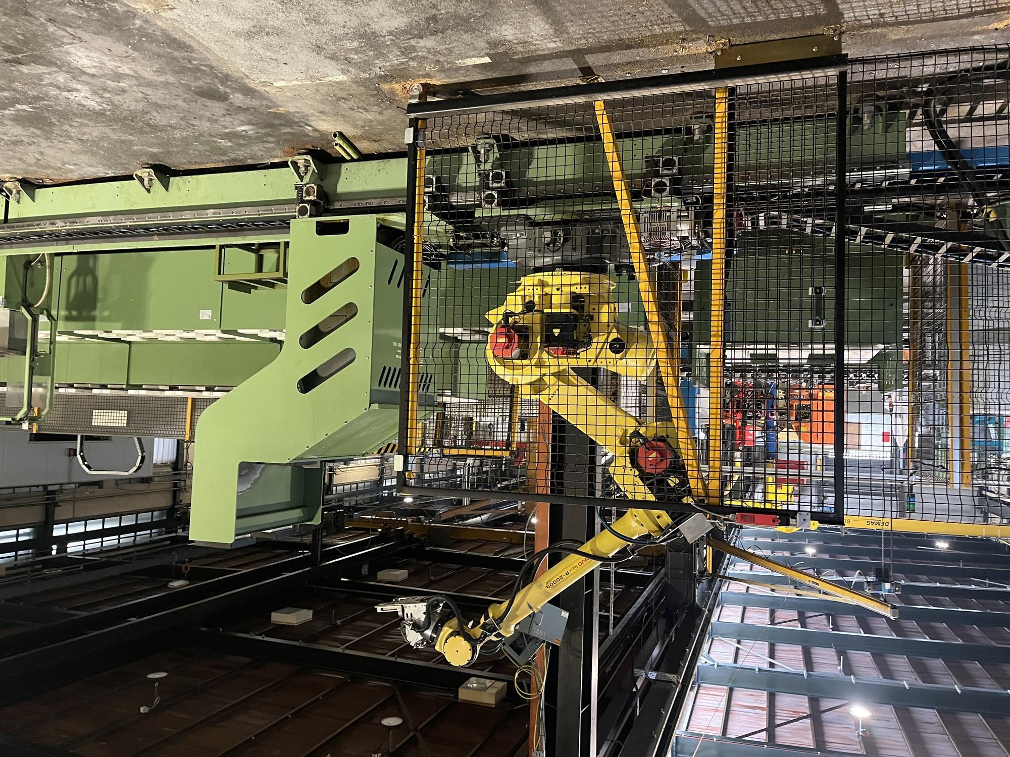 Robot de manutention industrielle Fanuc R-2000iB/165F avec contrôleur R-30la - X-travel ou robot : 15 mètres - Portée de 20 mètres en incluant le mouvement latéral gauche et droit - 6 axes - portée : 2655 mm - charge utile maximale de 165 kg Robot monté sur chenilles Winkel RLE-2000