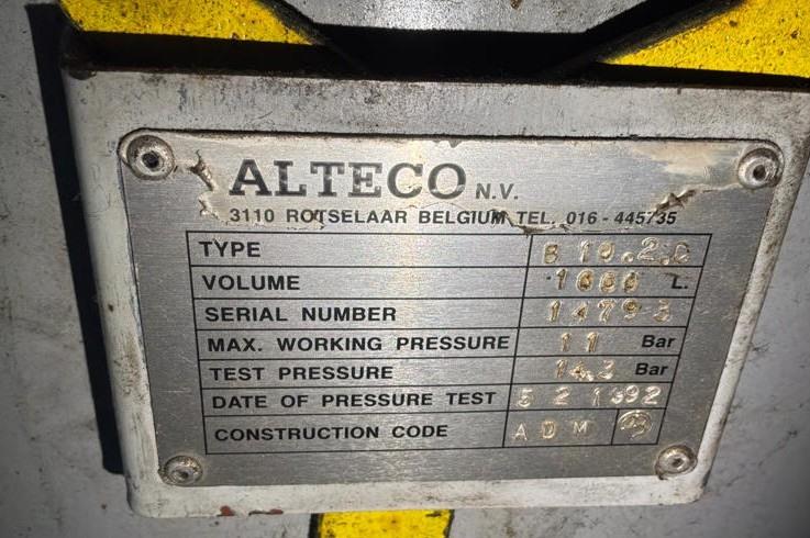 Alteco 1000 Liter tank Pressure vessel 11 bar